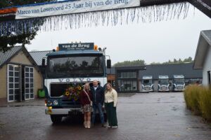 Op donderdag 23 oktober vierden we het 25-jarig jubileum van Marco van Losenoord. Donderdag is de vaste vrije dag van Marco, dus werd hij thuis verrast in Putten. In het konvooi, natuurlijk de Oldtimer Volvo NH van vader Adri van Losenoord.