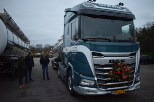 Donderdag 4 december vierden we het 25-jarig jubileum van Peter van Meerveld! In de ochtend werd Peter op de zaak opgewacht door collega’s en zijn vrouw Helma. Tijdens de koffie met krentenbrood kwam er ineens een spiksplinternieuwe DAF XG in jubileumeditie om de hoek rijden. Natuurlijk nam Peter deze direct in gebruik.